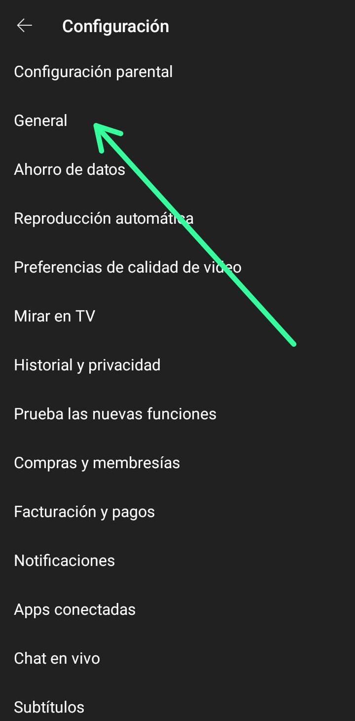 Dentro del menú, encontrarás la opción “configuración”, ingresa allí. Se desplegará un nuevo menú donde encontrarás la opción “General” y casi al final de esta sección, encontrarás la opción “Modo restringido”.