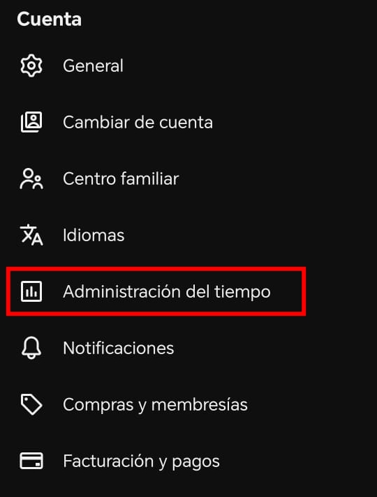 – Ahí, selecciona la opción de “Tiempo de reproducción” (o “Administración de tiempo”) y luego elige “Recordarme tomar un descanso”.