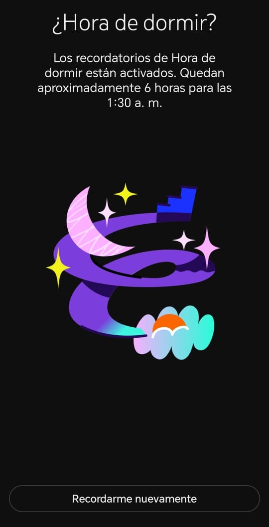 – Selecciona la opción “Recordarme cuando sea hora de dormir”.