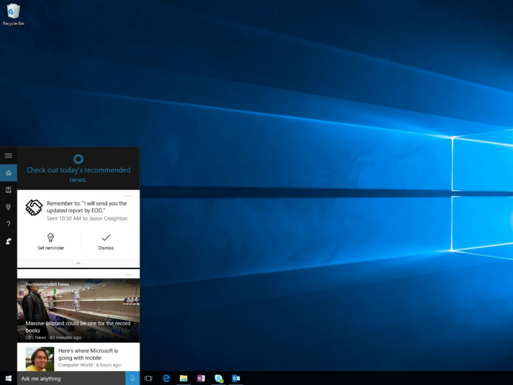 Para asegurarse de que no pierdas ninguna reunión importante, la nueva función está diseñada para analizar los mensajes de correo en los que prometiste terminar en una fecha algún proyecto o reunirte el próximo sábado con alguien. “Cortana va a mirar tus mails cuando dijiste que ibas a hacer algo. Si le envías un mail a un amigo o colega con contenido como ‘Te lo devolveré la próxima semana’ o ‘Terminaré esto a las 5:00 p.m. hoy”, Cortana creará una tarjeta para ayudarte a fijar un recordatorio”, explicó para el medio Marcus Ash, director del programa encargado del asistente para Windows.