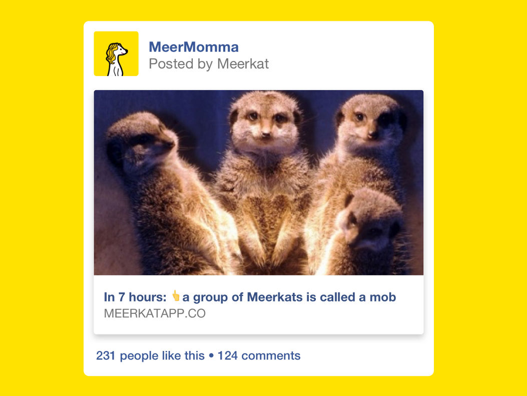 Tal vez has seguido de cerca la situación de Meerkat y Twitter. La primera, una aplicación de streaming, se popularizó de un momento para otro, y se valió de Twitter para difundir los streamings de los usuarios. Sin embargo, a partir de la compra de Periscope por parte de Twitter, era obvio que la red social del pajarito privilegiaría a su recién comprado servicio de streaming. Para contrarrestar esto, Meerkat añadió una nueva integración con Facebook con la nueva actualización de su aplicación para iOS.