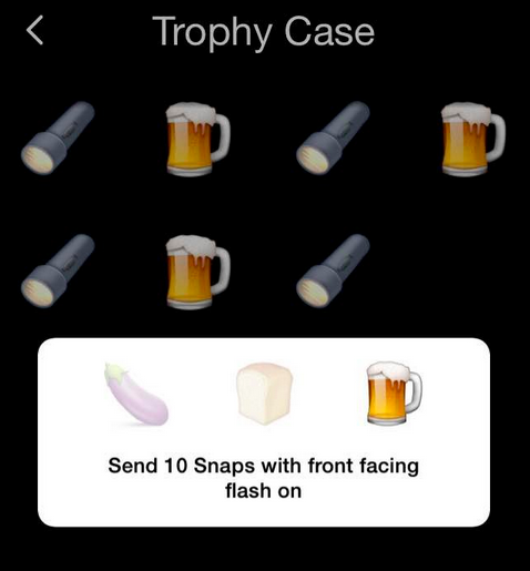 Finalmente, los trofeos forman parte de esta nueva actualización en donde a partir de diferentes ‘misiones’ o cosas que vayas haciendo en Snapchat vas a recibir premios virtuales y stickers basados en cómo usas la app, tal como lo hacen otras, como Swarm. Un ejemplo es el que se puede ver en la imagen superior, en donde si envías 10 snaps con el flash activado de la cámara frontal, vas a desbloquear un sticker. Cada vez que tengas una nueva recompensa, esta aparecerá en la sección de trofeos, que está ubicada en tu información personal, donde puedes ver quiénes te han agregado y cuáles amigos puedes agregar.