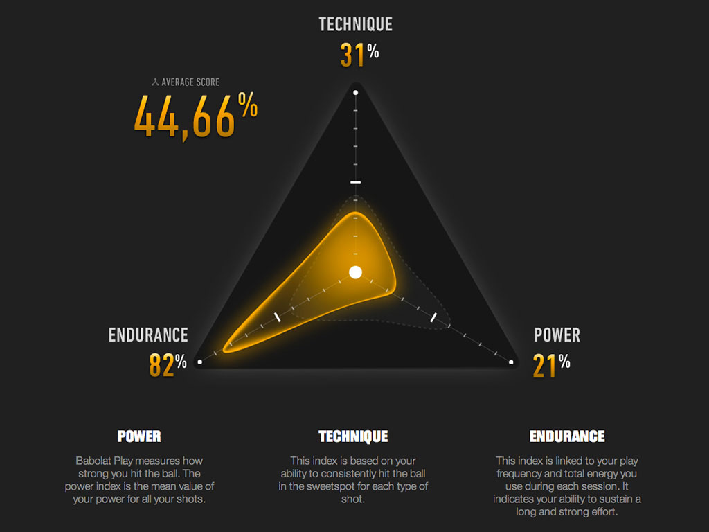 La raqueta recolecta información de la técnica, el impacto de la bola, fuerza, resistencia y swing del jugador. Esta información se conecta a la aplicación de ‘Babolat Play’, disponible en iOS y Android. En ella se pueden ver gráficamente los datos recolectados en porcentajes de aciertos y fallas, curvas de progreso y un puntaje de juego.