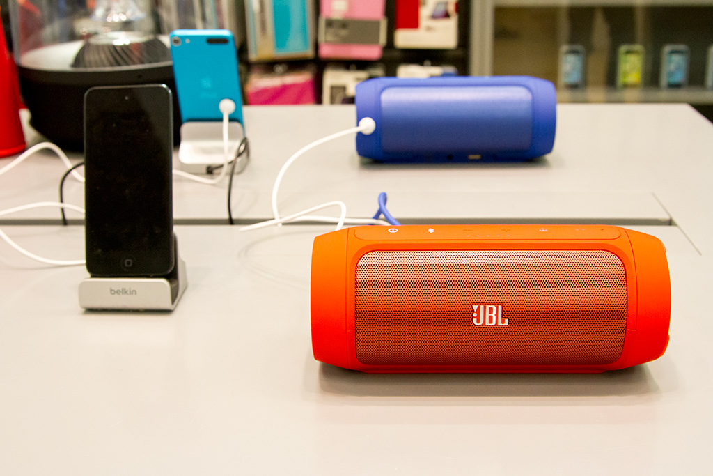 Dentro de la línea de JBL, el producto más destacado es el JBL Go, un parlante portátil que se conecta a cualquier dispositivo por medio de Bluetooth. El dispositivo también cuenta con una batería recargable que le da al consumidor hasta 5 horas de sonido de buena calidad en una caja compacta y ligera.