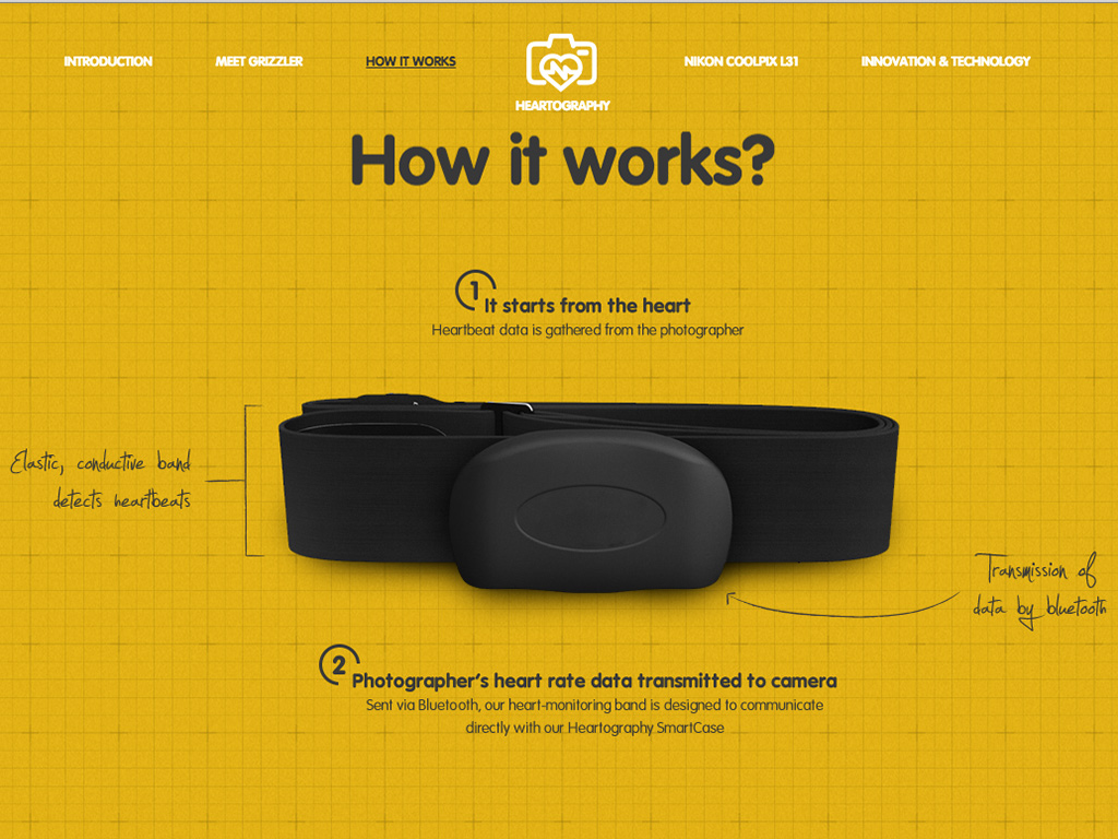 El monitor de corazón es un accesorio especial de Nikon que mide las pulsaciones del usuario y envía la información por Bluetooth a la Nikon Coolpix L31, una compacta gama media de la compañía. El fotógrafo establece un limite de ritmo cardiaco para que, cuando el corazón pulse más rápido por la emoción de una escena, la cámara se active y capture ese momento de emoción. Nikon lo denominó como ‘Heartography’ o ‘Corazonografía’.