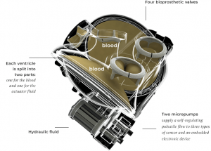 Para alcanzar un funcionamiento apropiado el dispositivo puede sustituir los ventrículos del corazón. Cuenta con una unidad de bomba hidráulica que imita los dos movimientos de latido del corazón. Uno de ellos es la diástole (cuando el músculo cardíaco se relaja y permite que se llene de sangre). El otro movimiento es la sístole (cuando el músculo se contrae y bombea sangre hacia las arterias).