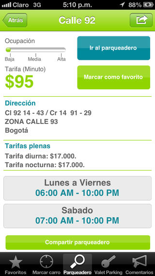 Hay otra app para lo mismo pero tiene más parqueaderos, no se limita a los de parking: parqueate.co