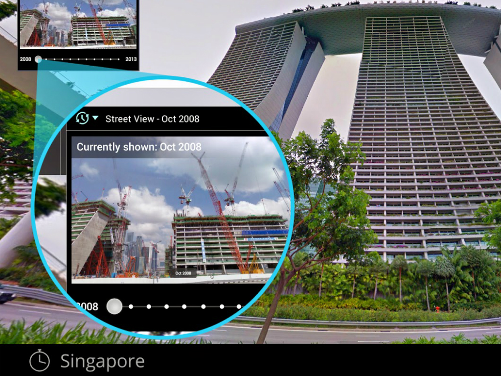Las fotos se alinearon para que los usuarios puedan tener la misma perspectiva de un mismo lugar a través del tiempo. Así, esta nueva función se puede considerar como una línea del tiempo digital de la historia reciente.