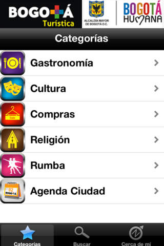 La aplicación ofrece un catálogo de cosas para divertirse en la capital del país. Con diferentes secciones como Gastronomía, Cultura y Religión, Compras, Rumba y Agenda la ciudad, cualquier persona que quiera sumergirse en Bogotá puede conocer toda su oferta con esta aplicación. Su amplio catálogo permite que los usuarios puedan elegir lo que más les convenga.