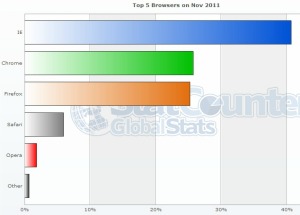 En la actualidad, según StatCounter, Internet Explorer sigue siendo el navegador más popular de la red con un 40,63%, seguido por Google Chrome, que tomó el segundo lugar en diciembre pasado con un 25,69%.