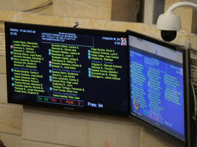 Esta fue la votación que aprobó la 'ley del TLC' en el senado. Foto: José Luis Peñarredonda (ENTER.CO).