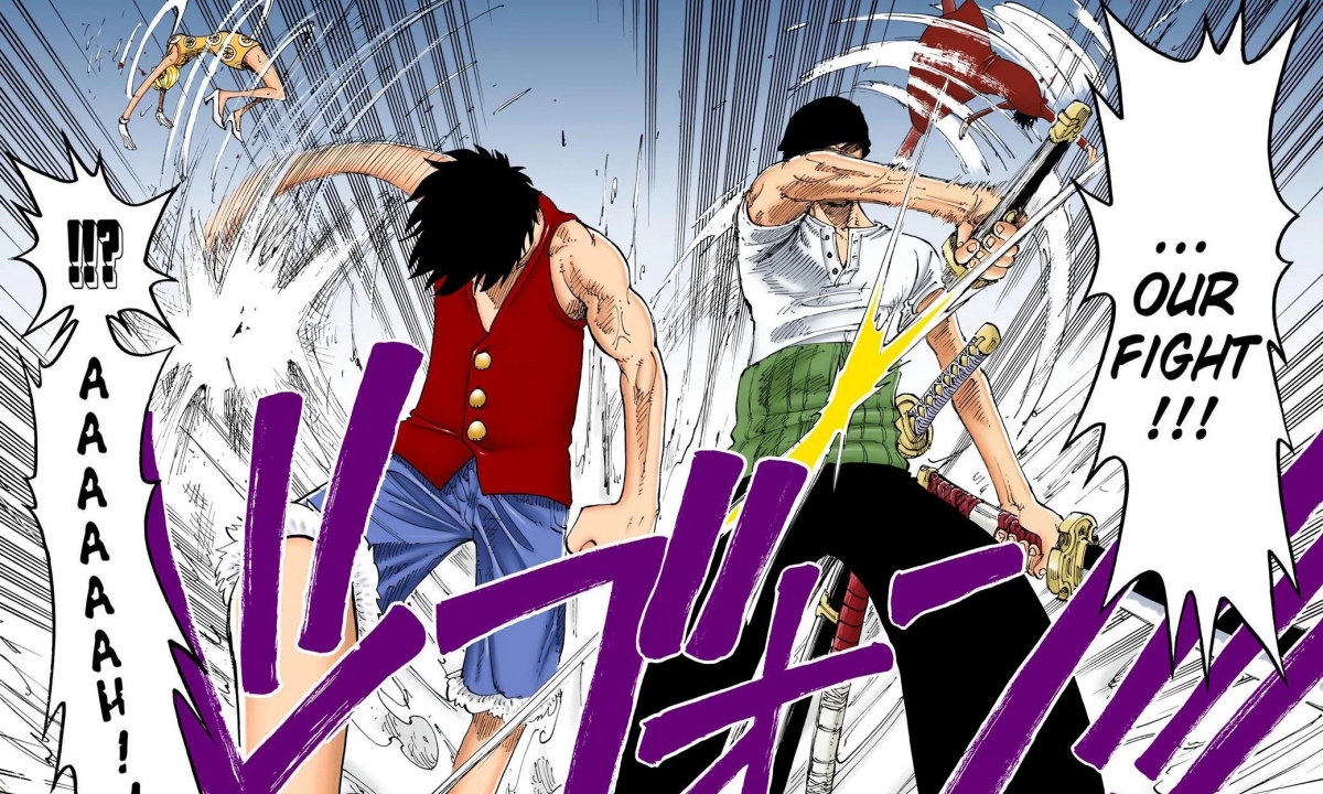 En el anime, Luffy se queda dormido mientras Zoro derrota a los agentes de Baroque Works. Al despertar, Luffy se enfurece creyendo que su espadachín atacó a las personas que les dieron una fiesta. Este malentendido culmina en un combate icónico que solo es detenido por la intervención de Nami.