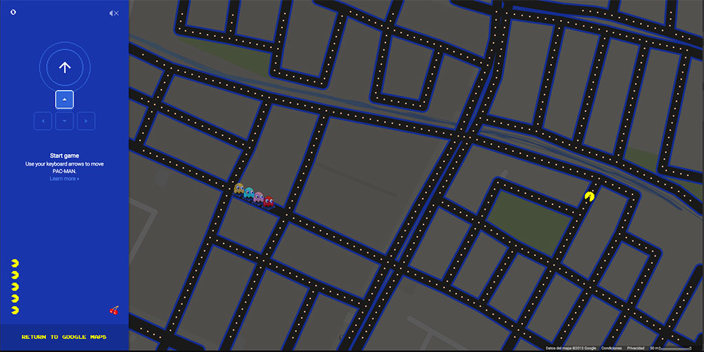 Como reporta Kotaku, para hacerlo tan solo deben meterse a la página en su navegador y buscar un buen mapa con muchas calles grandes. Traten de evitar las diagonales, que son bien traicioneras. En la parte de abajo a la izquierda encontrarán una fotico de pacman que transformará todo el mapa en un laberinto. Y ahora si, a escapar de los fantasmas.