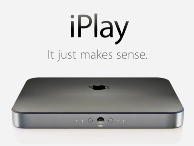 La consola de la manzana inicia un nuevo paso en la próxima generación de consolas. El iPlay tiene un diseño único, enfocado en la elegancia y simpleza del juego y el jugador. Como siempre, Apple piensa en la interconectividad de sus dispositivos, por lo cual para jugar los juegos del iPlay es necesario comprar un iPad mini. Este funciona como una pantalla doble que muestra los controles de los juegos. Sólo sincroniza con un iPad mini.