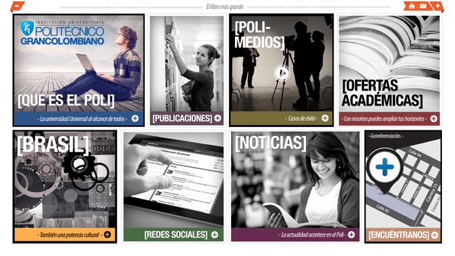 Cuando alguien llegue al libro se va a encontrar con diferentes secciones en las que podrá conocer la universidad, trabajos de estudiantes y publicaciones y noticias sobre Brasil como invitado de honor. Si se encuentra interesado en algo en especial, podrá compartirlo en ese instante, pues el libro está integrado con redes sociales.
