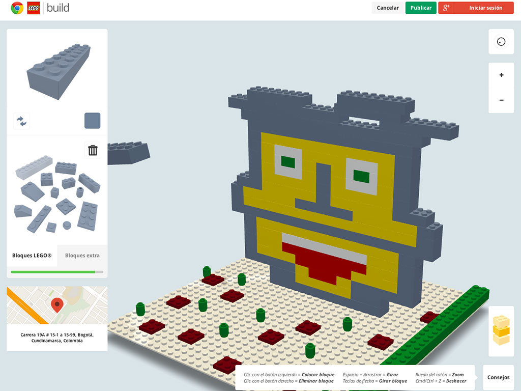 Esta página es una alianza entre Google y Lego para armar estructuras con las fichas básicas de la compañía de ladrillos de plástico. Para acceder a la plataforma de construcción tiene que utilizar el navegador Google Chrome.