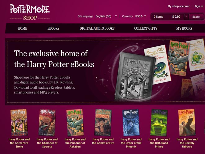 Pese a que en el momento los ebooks solo se encuentren en inglés americano y británico, en el sitio web se anunció que pronto estarán disponibles en español, francés, italiano y alemán. Según informa Mashable, las versiones de los libros electrónicos de Harry Potter originalmente iban a estar disponibles en octubre de 2011, pero el lanzamiento de los ebooks y del sitio web fue retrasado para hacer frente a la enorme demanda de los usuarios de la versión beta de Pottermore.