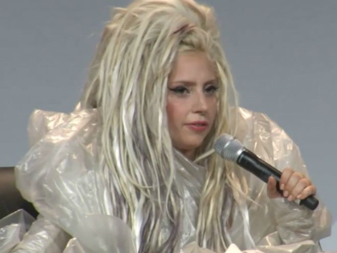 Para Lady Gaga, SXSW es la oportunidad de que exista una verdadera conexión entre los artistas y los fanáticos, en medio de una atmósfera única. Aquí la ciudad se transforma realmente en una verdadera fiesta de la música. Fue así como empezó la charla de la cantante esta mañana, vestida (como era de esperarse) con un vestido hecho por bolsas de basura blancas y grandes rastas rubias.