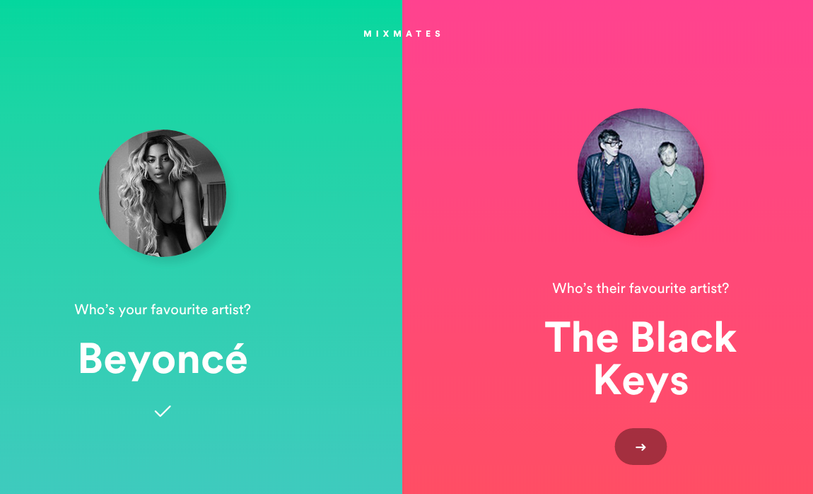 ¿Cómo funciona? La idea es que tú puedas combinar tu gusto musical con el de un amigo. Entonces, al ingresar en el sitio oficial, Mix Mates te va a preguntar cuál es tu artista favorito y cuál es el artista favorito de tu amigo. Allí, sus algoritmos harán la magia y te mostrarán los grados de separación entre un artista y otro.