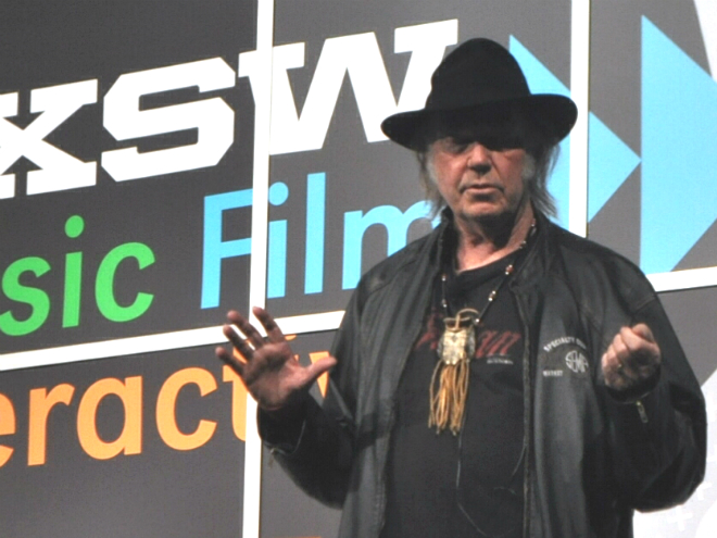 Young presentó también en su charla un video en el que músicos como Beck, Patti Smith, Jack White, Arcade Fire o Bruce Springsteen dieron testimonio de la diferencia entre el formato de las canciones de hoy y el que se escucha en Pono.