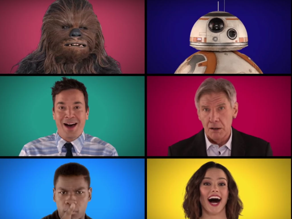 Para ir calentando motores y si todavía no lo has visto, el video que está sonando hoy por todas las redes sociales reúne al elenco de ‘Star Wars: The Force Awakens’ en el show de Jimmy Fallon cantando ‘a capela’ la canción oficial de esta historia.