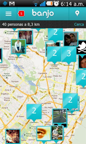 Lo que hace esta aplicación, disponible desde junio de 2011 en iOS y Android, es tomar la información geolocalizada que publican los usuarios de Facebook, Twitter, Google+ e Instagram y mostrarla en un mapa o en una lista, para que el usuario siempre sepa dónde están sus contactos. Banjo muestra tanto la ubicación de los contactos del usuario como la de otras personas que utilizan la aplicación. Además funciona como cliente de esas redes sociales, pues muestra los ‘posts’ generados cerca del sitio en el que se esté.