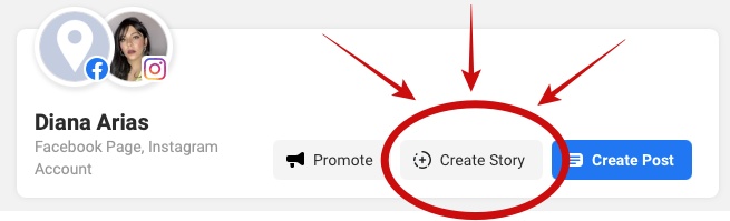 El siguiente paso es buscar el botón de ‘Crear Historia’. Este aparece debajo del nombre de tu página, hacia la derecha.
