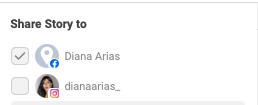 En el siguiente paso deberás seleccionar en que cuentas de Facebook e Instagram quieres compartirla, puedes escoger solo una o varias:
