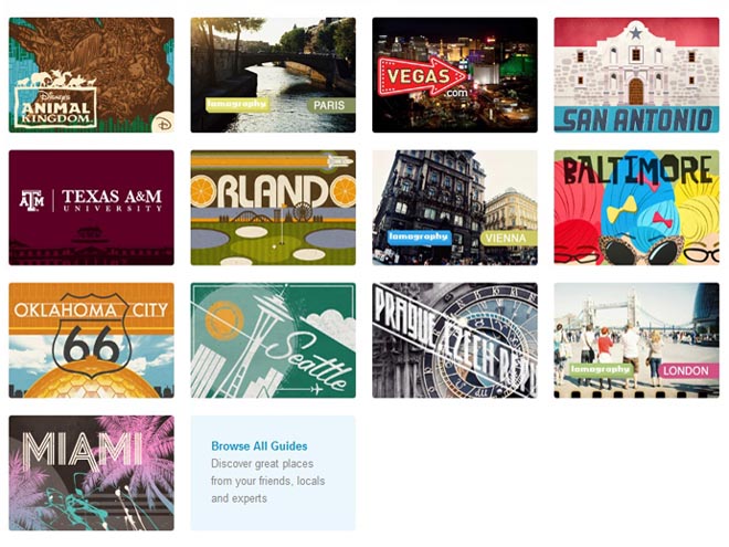 En este momento, al entrar al sitio web, se pueden encontrar muy buenas imágenes y gráficas de las guías de ciudades de Estados Unidos, Canadá, Europa, Asia, Oriente Medio y sitios específicos como los parques de diversiones de Disney, reservas naturales elaboradas por National Geographic y campus de universidades estadounidenses.