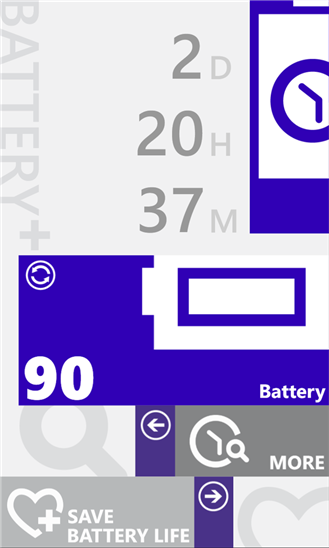 Simple y muy intuitivo, esta aplicación es un vigilante para tu bateria, Battery+ se integra con la pantalla de inicio de tu teléfono con Windows, así el usuario podrá estar más pendiente de la carga restante desde la pantalla de bloqueo.