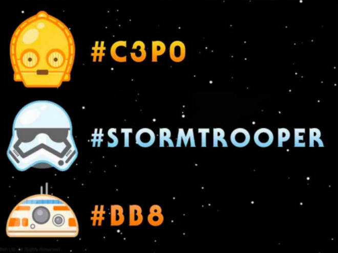 Para usarlos solo deben acompañar sus mensajes sobre StarWars con los hashtags que se ven en la imagen principal.