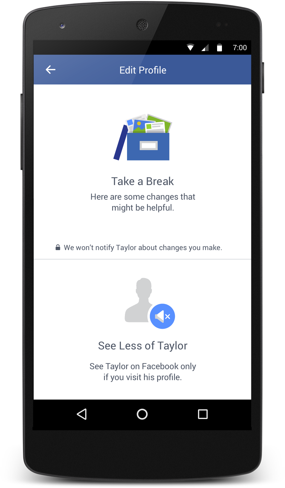 Entre las opciones que ofrecer Facebook en su experimento está primero la de no notificarle a tu ex los cambios que hagas en tu perfil, así como no ver información o publicaciones sobre tu ex pareja en el News Feed de la red social, a menos de que tú te metas directamente a su perfil. Y tampoco vas a tener su nombre sugerido cuando vas a escribir un mensaje o vas a identificar a amigos en fotos.