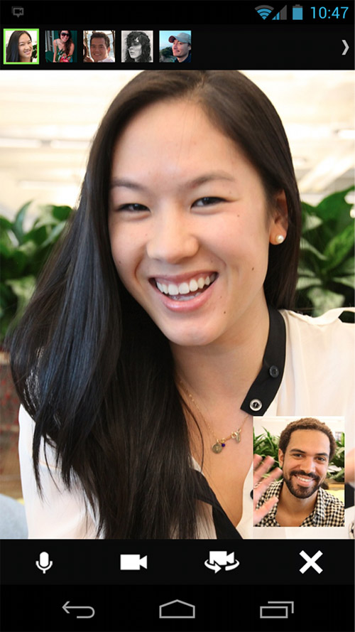 La actualización de la aplicación incluye características tan llamativas como la posibilidad de iniciar hangouts desde el teléfono, lo que significa que desde ahora los usuarios de Android podrán hacer videollamadas en grupo desde la aplicación de su teléfono.