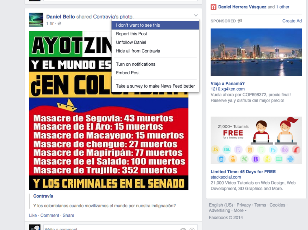 Si está totalmente saturado, no se preocupe que Facebook –en una extraña movida– sacó una herramienta para poder silencia e ignorar a su ‘amigo’. De acuerdo con TechCrunch, la nueva función permite manipular el tipo de contenido que aparece en el News Feed. En este momento, Facebook publica diferentes tipos de contenido: las entradas de los amigos, el contenido de apps, de las página que le gustan a uno y la publicidad.