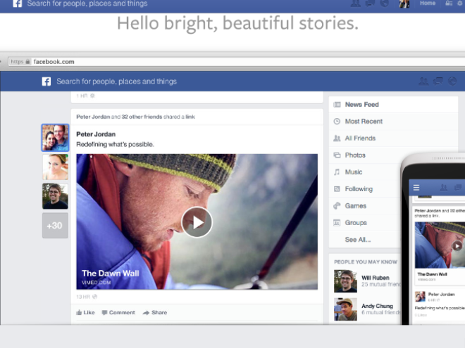 El rediseño del producto muestra el nuevo enfoque de Facebook. La explosión móvil y las fotos son dos de las tendencias más importantes de internet y Facebook quiere aprovecharlas. Ahora, la interfaz en el computador será consistente con la experiencia en dispositivos móviles. Zuckerberg dijo que el rediseño tiene una inspiración móvil y mostró cómo se verá el producto en las tres grandes plataformas: teléfonos móviles, tabletas y PC.