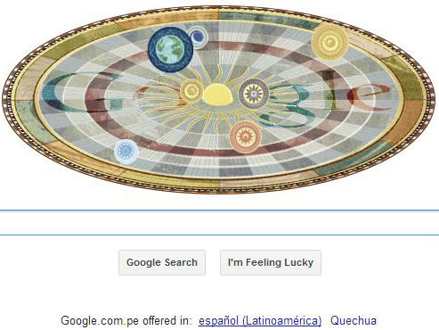 El identificador de Google cambia por un doodle en el que se pueden ver los planetas girando alrededor del sol, las letras del logo se ven tenues bajo el planetario inspirado por el astrónomo de origen polaco.