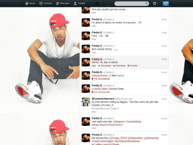 Y esto no termina. El fin de semana pasado, otro joven rapero también termina con su vida. Freddy E, como era conocido en el mundo artístico, fue encontrado muerto el sábado 5 de enero, a diferencia de su colega, Capital Steez, Freddy no fue tan seco en sus mensajes vía Twitter, desde su cuenta @Freddy_E alcanzó a trinar casi una docena de veces, y sus últimos mensajes eran cada vez más oscuros y tristes.