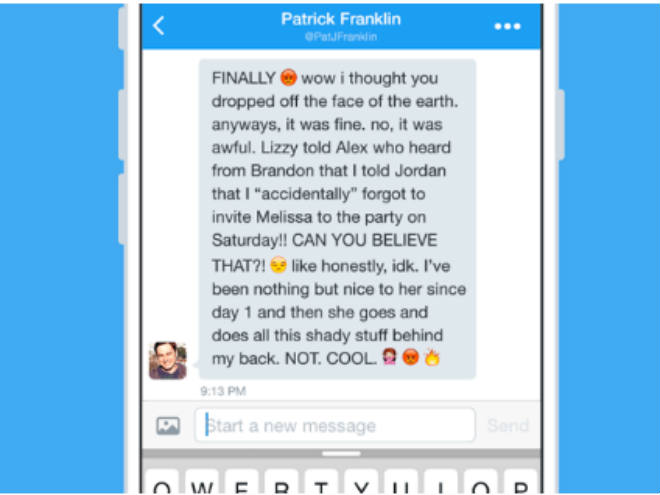 Según Twitter: “Los mensajes directos te permiten tener conversaciones privadas sobre memes, noticias, movimiento y eventos que suceden en Twitter. Cada uno de los cientos de millones de tuits que se envían a través de Twitter cada día es una oportunidad para provocar una conversación sobre lo que está pasando en tu mundo. Es por eso que hemos hecho algunos cambios en los mensajes directos en los últimos meses”.