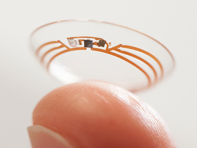 Los lentes de contacto inteligentes de Google evitarían esa odiosa tarea y medirían el índice de glucosa a través de las lágrimas del portador: “Estamos probando un lente de contacto inteligente construido para medir los niveles de glucosa en las lágrimas utilizando un diminuto chip inalámbrico y un sensor de glucosa en miniatura que se encajen entre dos capas del material para lentes de contacto blandos”.