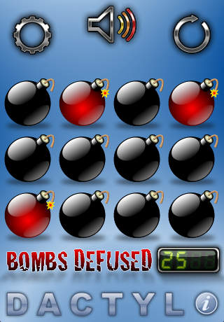 En este juego se pone a prueba su habilidad con los dedos. Una rejilla con 12 bombas aparecerá en la pantalla de su móvil. Las bombas se activarán y el jugador deberá apagarlas tocándolas rápidamente. Se puede unir a sus amigos para buscar quien desactiva la mayor cantidad de explosivos, pero cuidado con bloquear su línea de visón con las palmas y sus otros dedos.