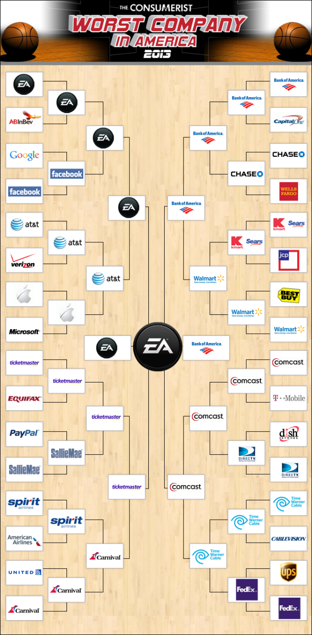 Una vez más, EA ganó el ‘torneo’ a la peor empresa de Estados Unidos; el año pasado, la empresa de videojuegos también se llevó el título. La competencia es una creación de Consumer Reports, una ONG que vela por los derechos de los consumidores y después de enfrentar a compañías dentro de industrias similares, se lleva a cabo una final con los ganadores de sus respectivos sectores. En el enfrentamiento final, EA sobrepasó a Bank of America, uno de los bancos más grande del país del norte.