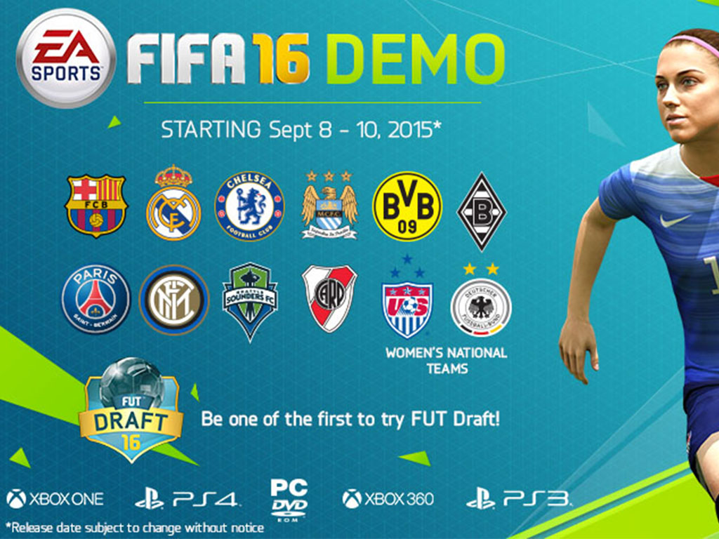 Después de una larga espera EA lanzó el demo de su popular emulador de fútbol, FIFA 16. El juego se encuentra disponible para que lo descargues de forma gratuita en Xbox One, PlayStation 4, PC, Xbox 360 y PlayStation 3 según lo anunció el sitio easports.com.