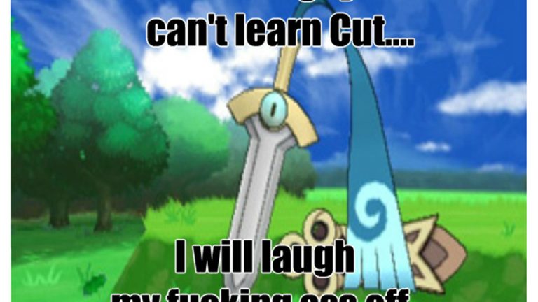 Cuando lo encontré mientras jugaba me acordé de este gran comentario, y lo primero que hice fue regresar a un centro pokémon y meterlo en el equipo para enseñarle la habilidad. Para mi sorpresa ( y un poco de decepción) sí puede aprender la habilidad de ‘Cut’. Y no es todo, Honedge (el pokémon espada) resulta que es una buena adición al equipo.