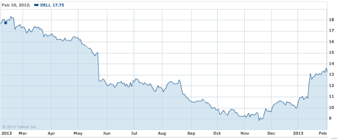 Cuando el río suena piedras lleva. Eso parece ser el caso del fabricante de computadores Dell. Hace unos días publicamos que la compañía estadounidense tenía planes de recomprar sus acciones y dejar las turbulentas aguas de Wall Street. Pues este martes Dell anunció que comprará todas sus acciones en el mercado financiero a 13,65 dólares por acción, un premium de 25% frente al valor listado en NASDAQ cuando se congeló el precio el 11 de enero. La jugada fue financiada por el mismo Michael Dell, su firma de inversión MSD Capital, la empresa de capital privado Silver Lake y por Microsoft, que puso 2.000 millones de dólares.