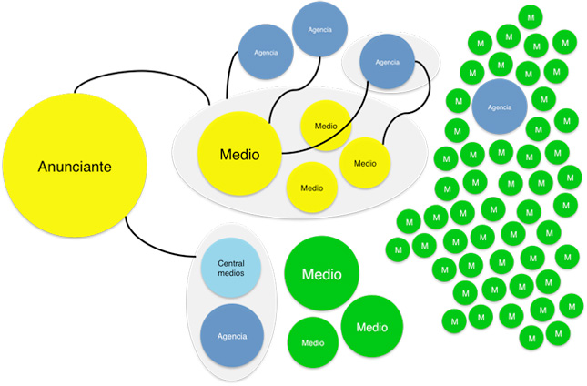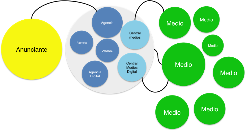 Al igual que otras industrias, la publicidad ha sido impactada por las dinámicas digitales. La industria ha evolucionado desde un modelo simple a uno complejo en el cual cada vez hay más actores e intermediarios.