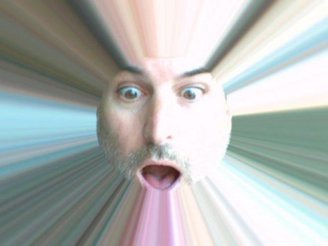 Una de las fotos más humanas: Jobs decidió jugar con la aplicación Photo Booth cuando esta se desarrollaba. Foto: Mike Matas (empleado de Apple).