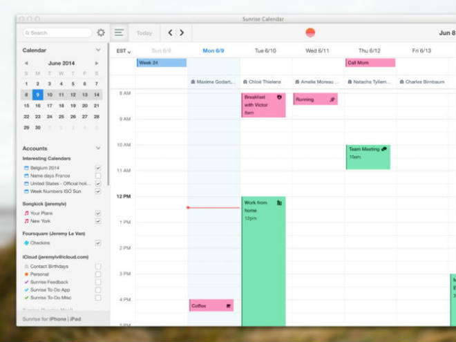 Y definitivamente Sunrise tiene todo lo que uno busca en un calendario: diseño llamativo, la posibilidad de tener en un solo sitio todos los eventos de Facebook, Google, iCloud, actualización en tiempo real, el acceso a diferentes calendarios a nivel mundial o calendarios temáticos, así como un buscador que les permite a los usuarios ingresar una palabra clave para ir directamente a determinados eventos.