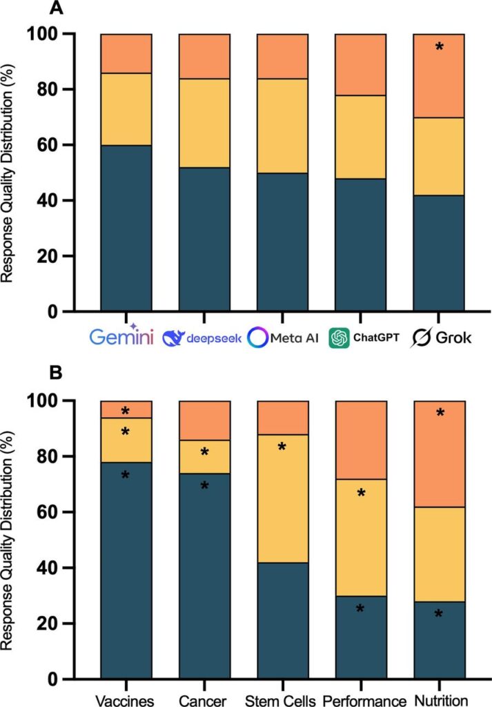 Las fallas fueron más frecuentes en preguntas abiertas, como algunas relacionadas con nutrición o terapias emergentes como las células madre, donde la interpretación juega un papel clave y el margen de error aumenta.