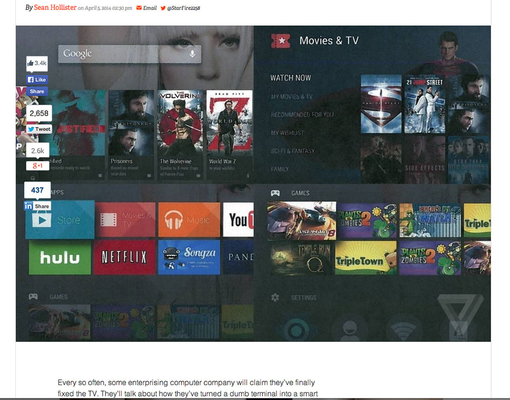 A finales de 2010 Google presentó los primeros detalles de ‘Google TV‘, una plataforma que se implementó en algunos televisores pero que no tuvo éxito. A finales del año pasado se revelaron los primeros rumores del sucesor bajo el nombre de ‘Nexus TV’, una plataforma a base de Android que servirá como sistema de entretenimiento.