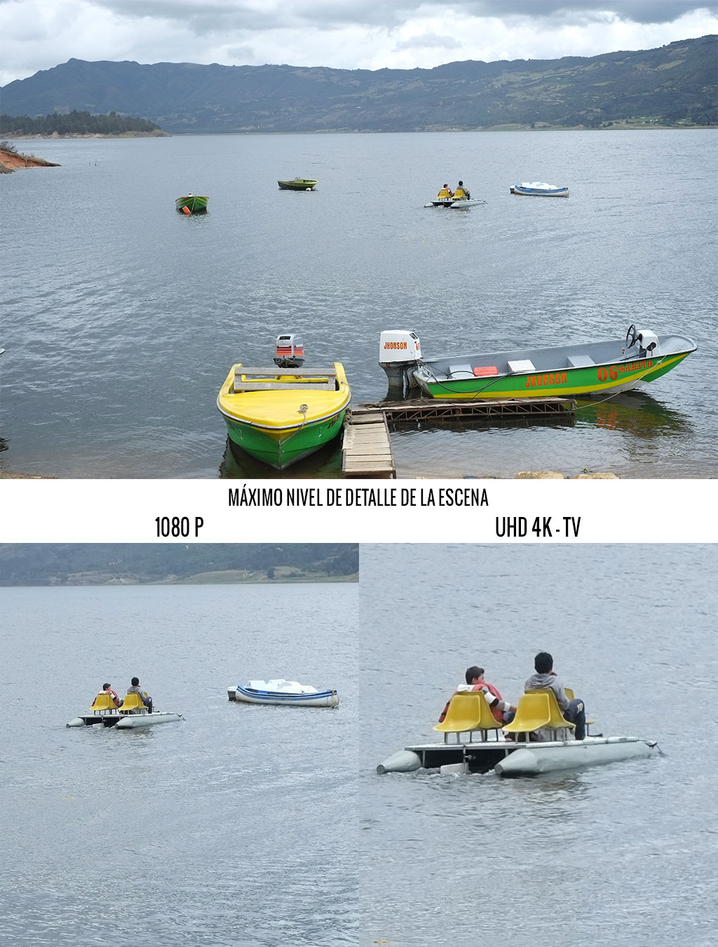 En comparación con la alta definición 1080p las dimensiones son un poco mayores que el doble en cada eje, y su resolución es cuatro veces mayor que la generación pasada de video. A esto hay que sumarle que la mayoría de cámaras Full HD graba en promedio hasta 30 cuadros, mientras que el 4K graba en promedio entre 50 y 60 cuadros por segundo. Esto genera más detalle en las texturas de los objetos, capta mejor el color de la escena, tiene un mejor rango de luz y sombra y los cuadros por segundo generan un movimiento más fluido en la pantalla.